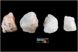 | Description / विवरण | A specimen of a fluted core having several broad fluted marks indicating the detached blades from it |