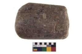 | Description / विवरण | A partially broken specimen of a mullerwith rough surface, it is made of sandstone, t is a roughly oval in section and with prominent holding end. |