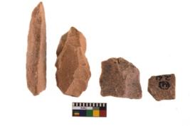 | Description / विवरण | Specimen of flake tool with prominent flaking marks. They are made up of a short flakes with sides trimmed. |