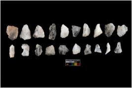 | Description / विवरण | There are n-20 of intact flake cores made up of Quartz. Some of them have bulge of percussion and some are flat flakes. |