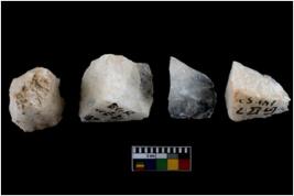 | Description / विवरण | A specimen of a fluted core having several broad fluted marks indicating the detached blades from it |