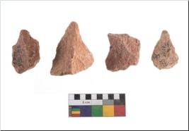 | Description / विवरण | Specimen of flake tools with prominent flaking marks. It made up of a short flakes with sides trimmed. |