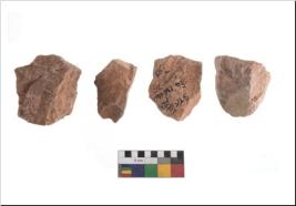 | Description / विवरण | Specimen of flake tools with prominent flaking marks. It made up of a short flakes with sides trimmed. |