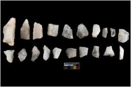 | Description / विवरण | There are n-20 of intact flake cores made up of Quartz. Some of them have bulge of percussion and some are flat flakes. |