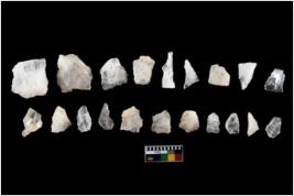 | Description / विवरण | There are n-20 of intact flake cores made up of Quartz. Some of them have bulge of percussion and some are flat flakes. |