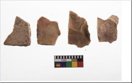 | Description / विवरण | Four utilised worked cores with sharp edges. Flakes removed from almost all the sides. Some are tapering at one end. |