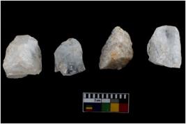 | Description / विवरण | A specimen of a fluted core having several broad fluted marks indicating the detached blades from it |