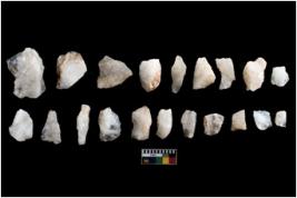 | Description / विवरण | There are n-20 of intact flake cores made up of Quartz. Some of them have bulge of percussion and some are flat flakes. |