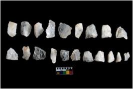 | Description / विवरण | There are n-20 of intact flake cores made up of Quartz. Some of them have bulge of percussion and some are flat flakes. |