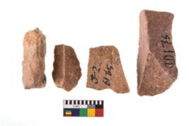 | Description / विवरण | Specimen of flake tool with prominent flaking marks. They are made up of a short flakes with sides trimmed. |