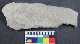 | Description / विवरण | Fragment of chert blade showing thick broad parallel sided, two dorsal is present, rectangle in section and sharp cutting edges. Its surface is smooth. |