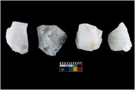 | Description / विवरण | Four utilised worked cores with sharp edges. Flakes removed from almost all the sides. Some are tapering at one end. |