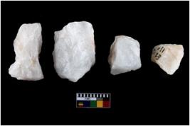 | Description / विवरण | Four utilised worked cores with sharp edges. Flakes removed from almost all the sides. Some are tapering at one end. |