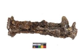 | Description / विवरण | A partially broken specimen of a iron clamp with nail at present It is highly corroded. |