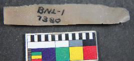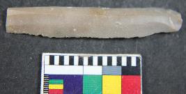 | Description / विवरण | Fragment of chert blade showing thick broad parallel sided, two dorsal is present, trapezi in section and sharp cutting edges. Its surface is smooth. |