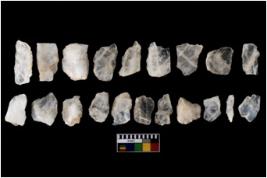| Description / विवरण | There are n-20 of intact flake cores made up of Quartz. Some of them have bulge of percussion and some are flat flakes. |