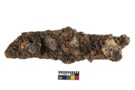 | Description / विवरण | A partially broken specimen of a iron clamp with nail it is rectangular in shape at present It is highly corroded. |