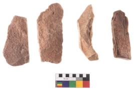 | Description / विवरण | Specimen of flake tools with prominent flaking marks. It made up of a short flakes with sides trimmed. |