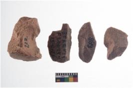 | Description / विवरण | A Sub rectangular flake with wavy thick distal end and broken functional top. It reined pebbly cortex on one side and irregular thin edge on the other |