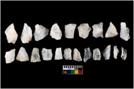 | Description / विवरण | There are n-20 of intact flake cores made up of Quartz. Some of them have bulge of percussion and some are flat flakes. |