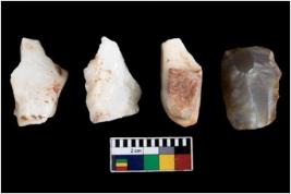| Description / विवरण | Four cores; most of them are uneven with flakes removed from almost all the sides. |