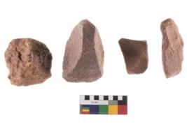 | Description / विवरण | Specimen of flake tools with prominent flaking marks. |