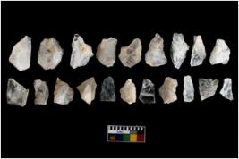 | Description / विवरण | There are n-20 of intact flake cores made up of Quartz. Some of them have bulge of percussion and some are flat flakes. |