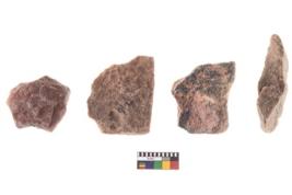 | Description / विवरण | Specimen of flake tools with prominent flaking marks. |