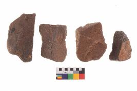 | Description / विवरण | There are n-4 of utilized flake cores. There are multidirectional irregular dominant scar pattern on both dorsal and ventral face of the cores. Some of them bulge of percussion and some are flat flake cores. |