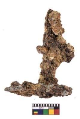 | Description / विवरण | A partially broken specimen of a iron clamp with nail it is rectangular in shape at present It is highly corroded. |