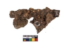 | Description / विवरण | A partially broken specimen of a iron clamp with nail at present It is highly corroded. |
