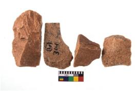 | Description / विवरण | Specimen of flake tool with prominent flaking marks. |
