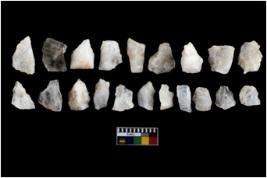 | Description / विवरण | There are n-20 of intact flake cores made up of Quartz. Some of them have bulge of percussion and some are flat flakes. |