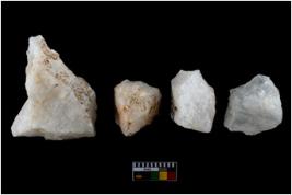 | Description / विवरण | A specimen of a fluted core having several broad fluted marks indicating the detached blades from it |