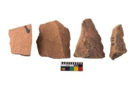 | Description / विवरण | Specimen of flake tool with prominent flaking marks. |