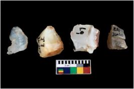 | Description / विवरण | Four cores; most of them are uneven with flakes removed from almost all the sides. |