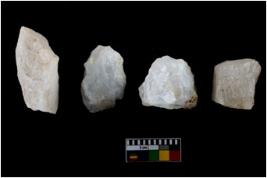| Description / विवरण | A specimen of a fluted core having several broad fluted marks indicating the detached blades from it |