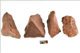 | Description / विवरण | Four worked utilised flakes. Most of them are uneven with sharp edges. |