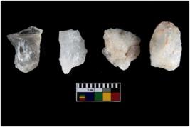 | Description / विवरण | Four utilised worked cores with sharp edges. Flakes removed from almost all the sides. Some are tapering at one end. |