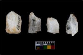 | Description / विवरण | A specimen of a fluted core having several broad fluted marks indicating the detached blades from it |