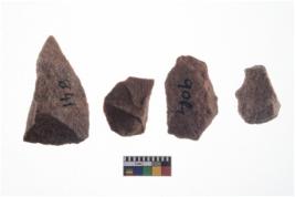 | Description / विवरण | A Sub rectangular flake with wavy thick distal end and broken functional top. It reined pebbly cortex on one side and irregular thin edge on the other |