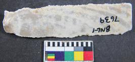 | Description / विवरण | Fragment of chert blade showing thick broad parallel sided, two dorsal is present, tringular in section and sharp cutting edges. Its surface is smooth. |