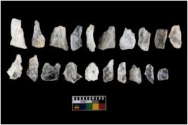 | Description / विवरण | There are n-20 of intact flake cores made up of Quartz. Some of them have bulge of percussion and some are flat flakes. |