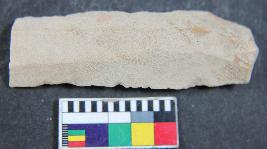 | Description / विवरण | Fragment of chert blade showing thick broad parallel sided, two dorsal is present, trapezi in section and sharp cutting edges. Its surface is smooth. |