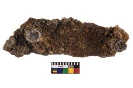| Description / विवरण | A partially broken specimen of a iron clamp with nail it is rectangular in shape at present It is highly corroded. |