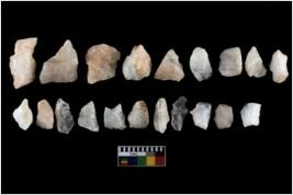 | Description / विवरण | There are n-20 of intact flake cores made up of Quartz. Some of them have bulge of percussion and some are flat flakes. |