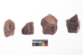 | Description / विवरण | A Sub rectangular flake with wavy thick distal end and broken functional top. It reined pebbly cortex on one side and irregular thin edge on the other |