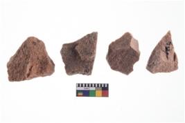 | Description / विवरण | A Sub rectangular flake with wavy thick distal end and broken functional top. It reined pebbly cortex on one side and irregular thin edge on the other |