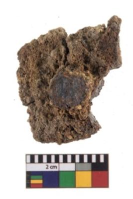 | Description / विवरण | A partially broken specimen of a iron clamp with nail it is rectangular in shape at present It is highly corroded. |