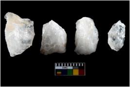 | Description / विवरण | Four utilised worked cores with sharp edges. Flakes removed from almost all the sides. Some are tapering at one end. |